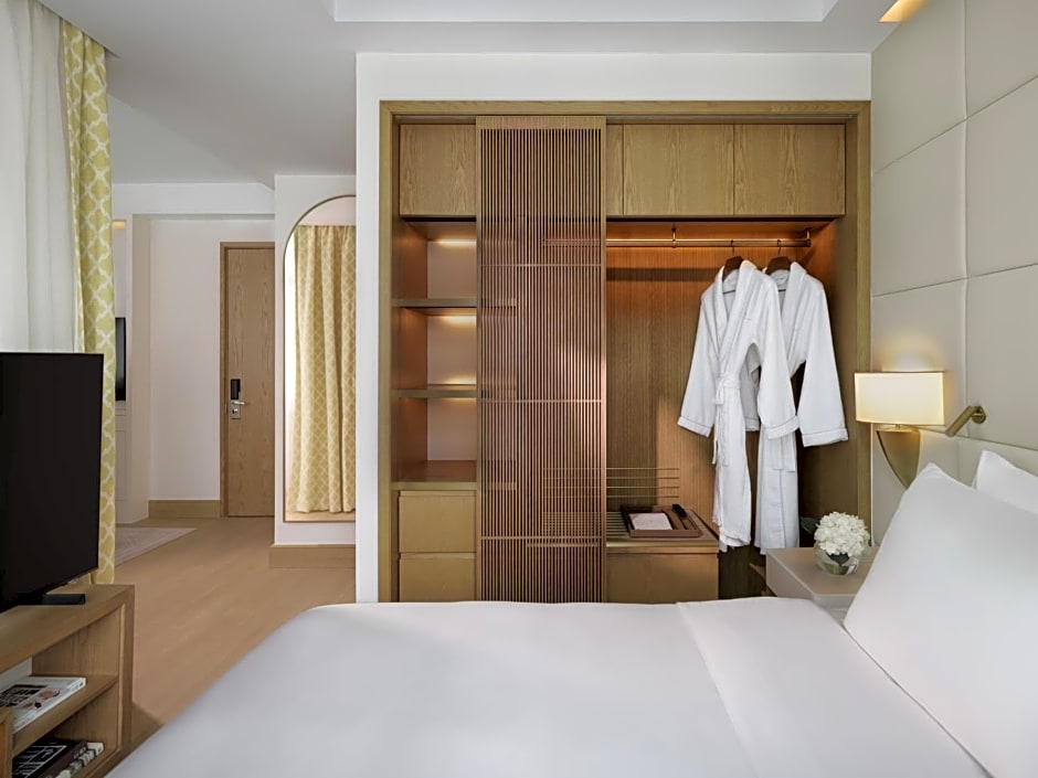 Providing free toiletries and bathrobes, this studio includes a private bathroom with a shower, a hairdryer and slippers. Guests can make meals in the kitchenette that comes with a stovetop, a refrigerator, kitchenware and a microwave. The air-conditioned studio provides a flat-screen TV with cable channels, soundproof walls, a mini-bar, a tea and coffee maker as well as city views. The unit offers 1 bed.